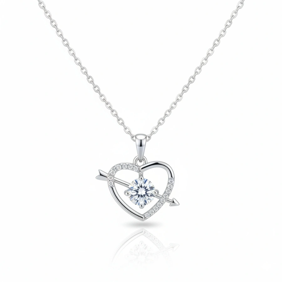 Silver Plated Anti Tarnish American Diamond Studded Heart Themed Pendant Necklace