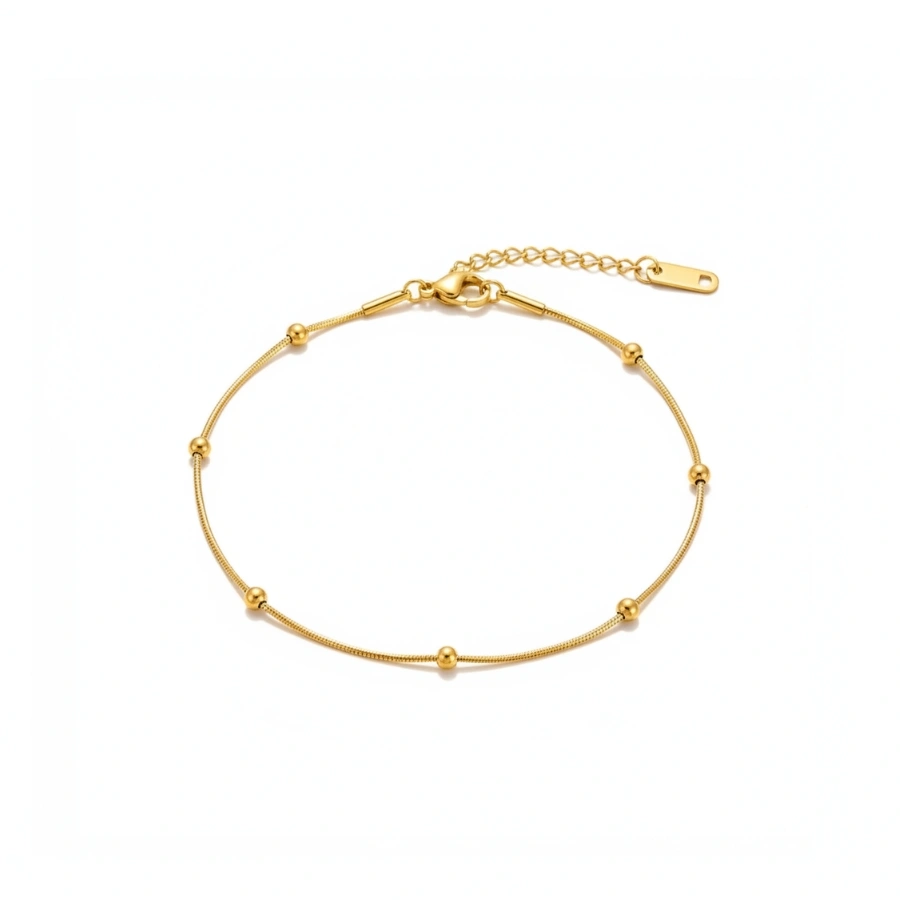 This elegant anti-tarnish 18k gold-plated 316L stainless steel bracelet features a chic beaded snake chain design, perfect for a durable and timeless minimalist look.