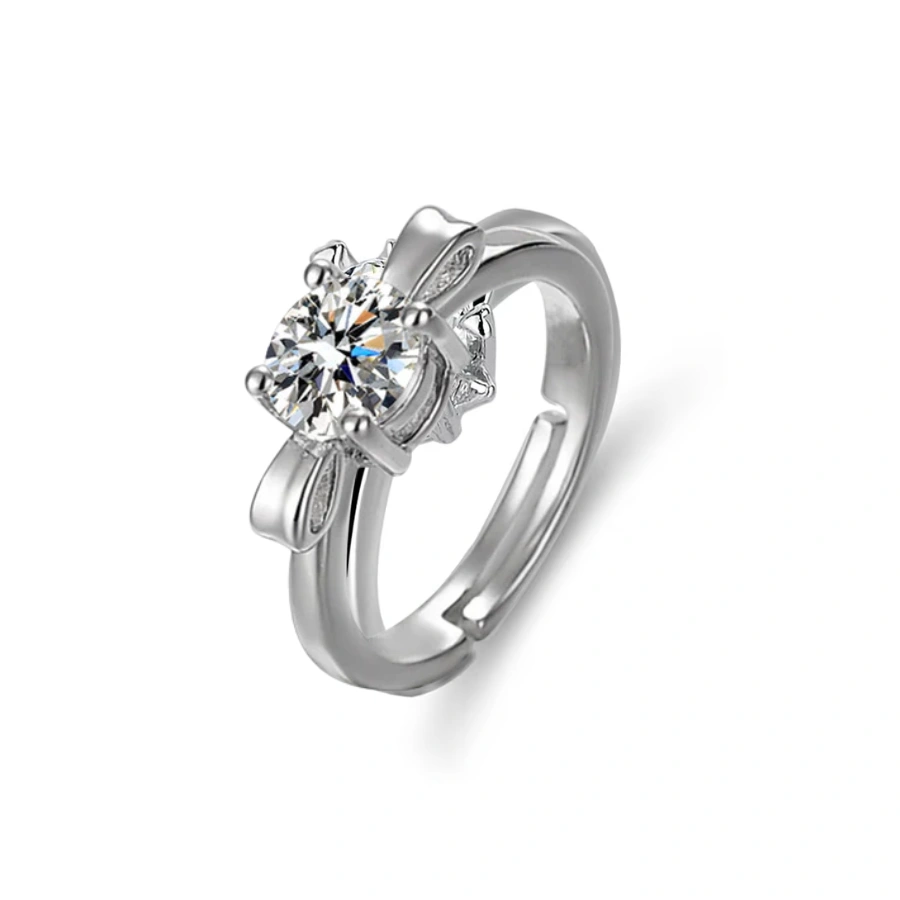 Silver Plated Crystal Studded Bow Tie inspired Solitaire Adjustable Finger Ring.