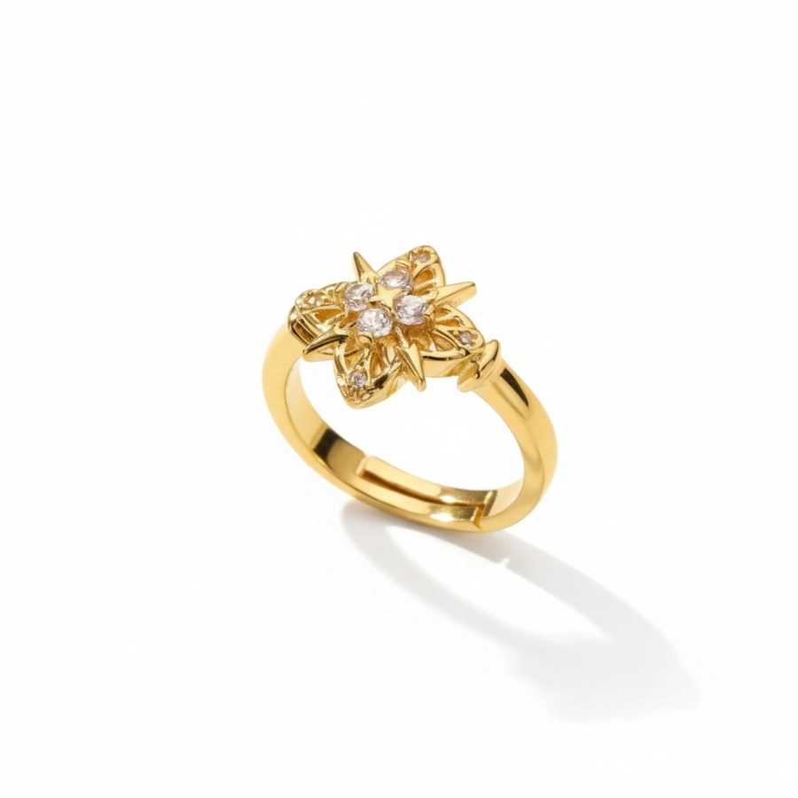 Add a touch of elegance to your look with this anti-tarnish, 18k gold-plated stainless steel adjustable starburst ring, featuring sparkling crystals for durable, everyday waterproof wear.