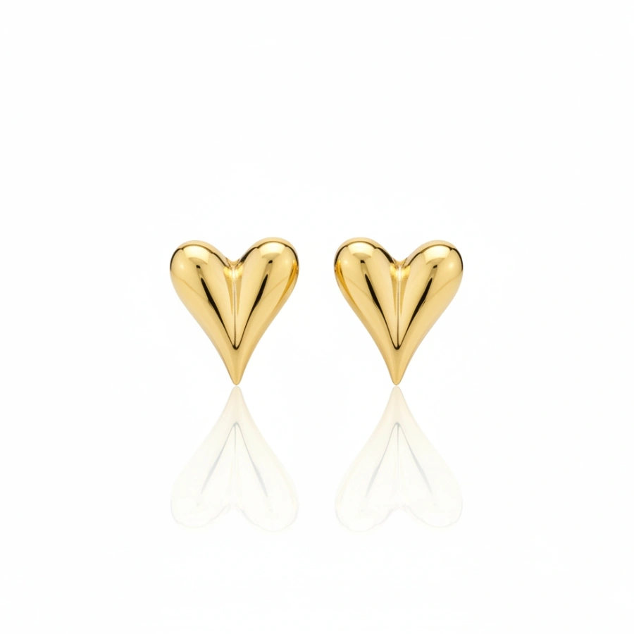 Statement anti-tarnish 18k gold-plated stainless steel puffed heart earrings for a bold, hypoallergenic, and waterproof minimalist jewelry look.