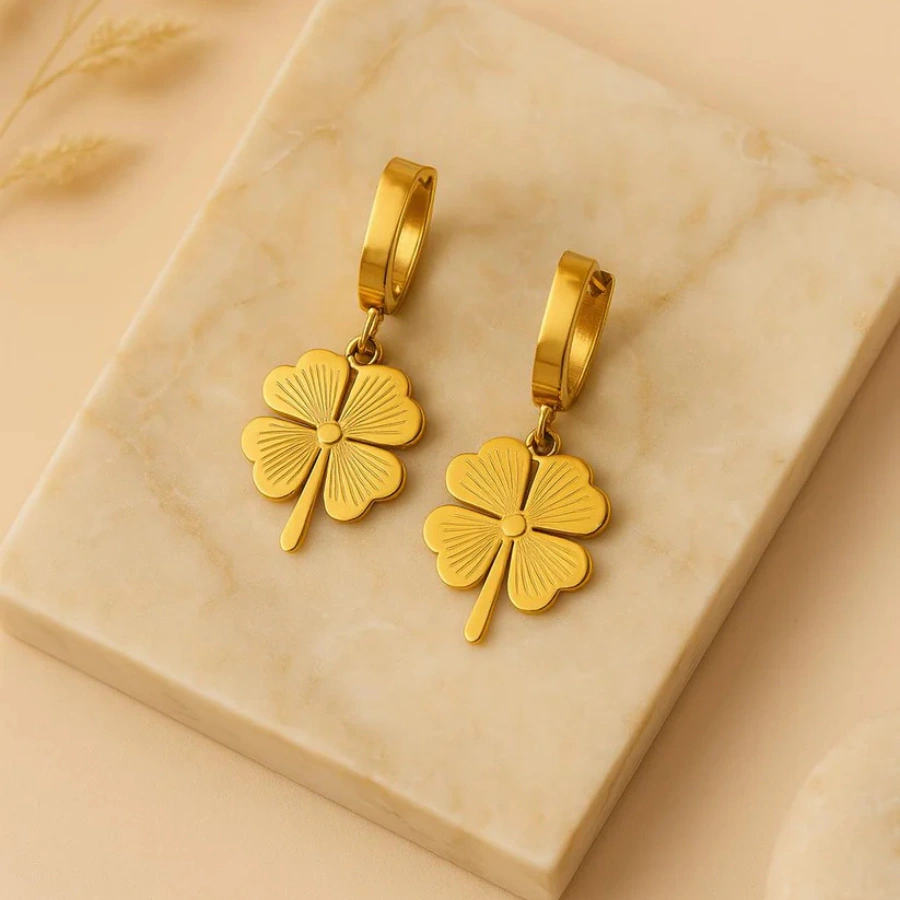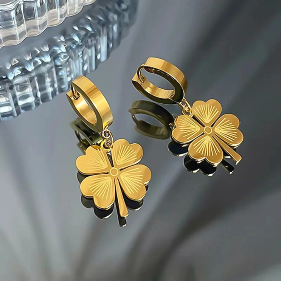 Elevate your style with four-leaf clover earrings made from stainless steel and plated with 18k gold. These earrings are not just a fashion statement but also a symbol of luck and prosperity.