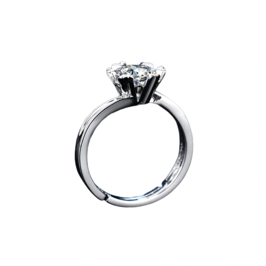 Silver-plated crystal studded solitaire adjustable ring with anti-tarnish finish modern elegance meets timeless style.