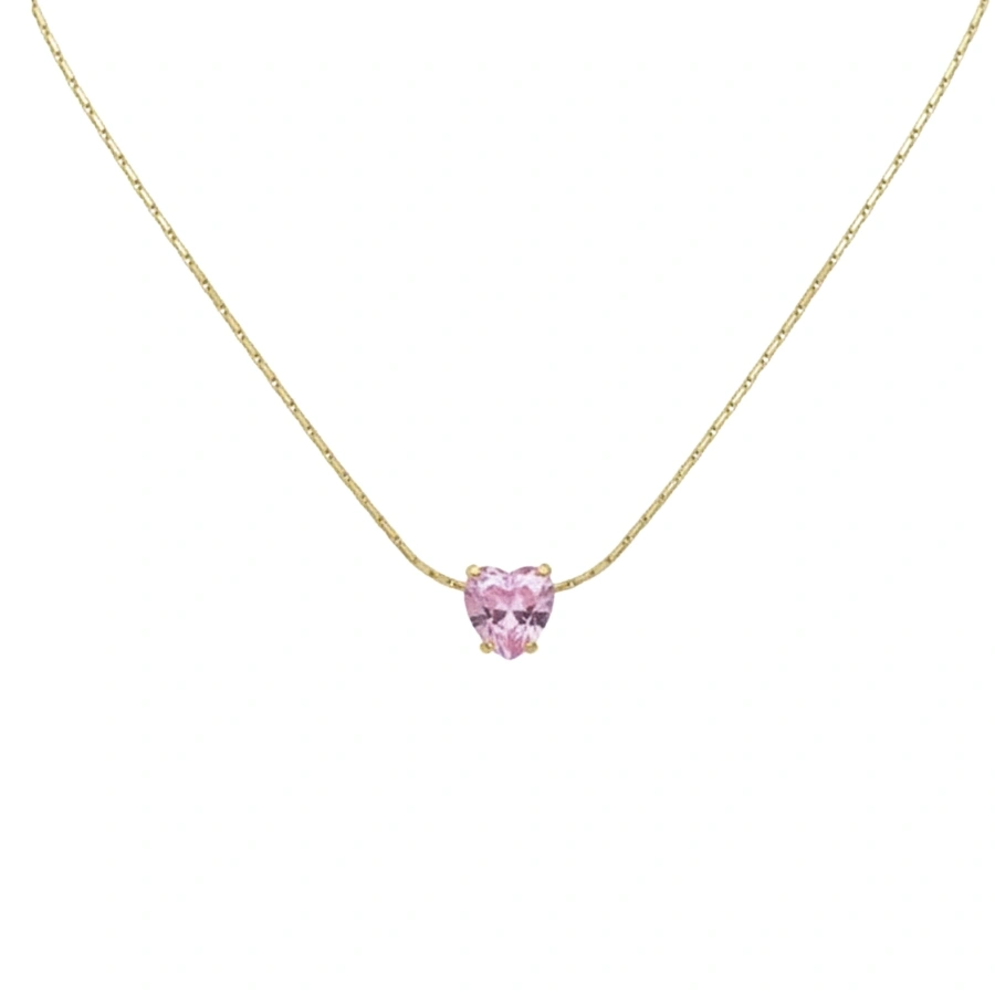 Showcase your romantic style with this anti-tarnish 18k gold-plated stainless steel necklace, featuring a delicate heart-shaped pink crystal for a perfect touch of minimalist elegance.