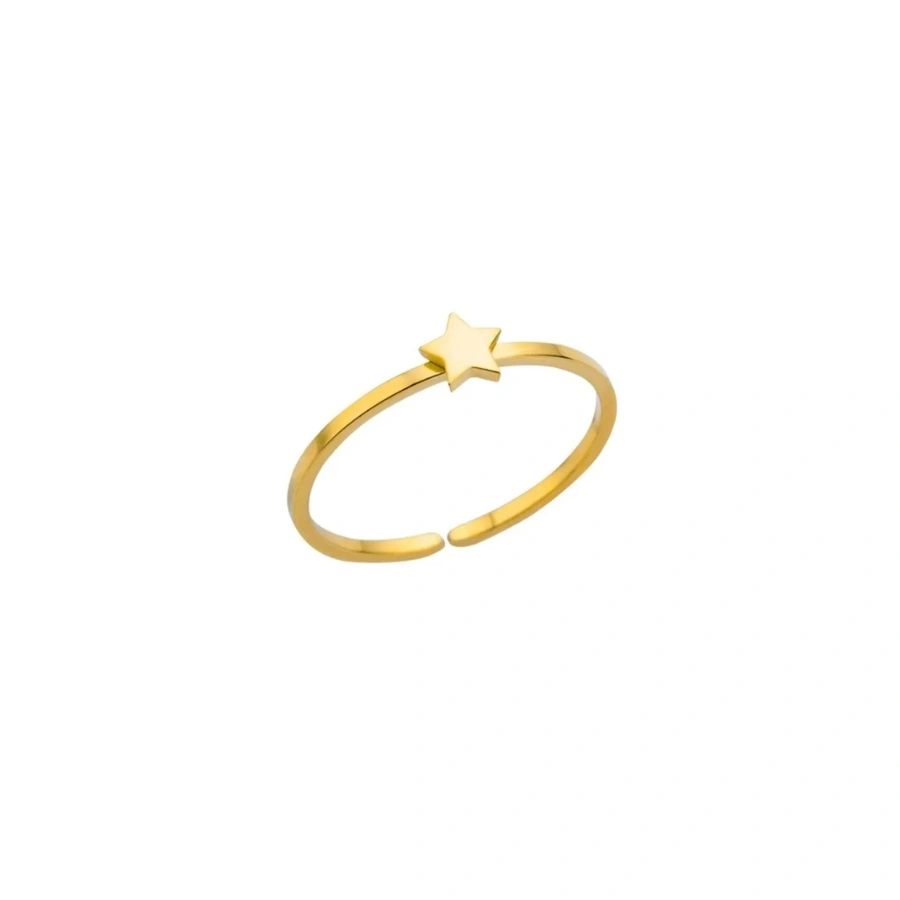 This elegant anti-tarnish 18k gold-plated 304 stainless steel adjustable ring features a minimalist star motif, offering a durable and chic celestial accessory for any occasion.