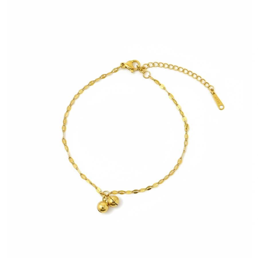 A charming gold-plated stainless steel anklet featuring two gold beads. Designed with anti-tarnish coating for lasting elegance and shine.