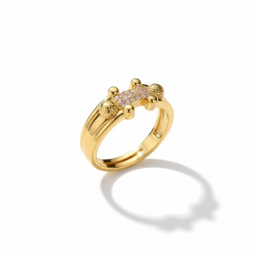 Combining style, practicality, and longevity, this ring is more than just an accessory—it’s an investment in quality. The stainless steel base ensures lasting durability while the 18k gold plating resists tarnish, keeping it flawless for years to come. Its geometric pavé detail adds a modern touch, making this ring the perfect blend of classic and contemporary fashion.