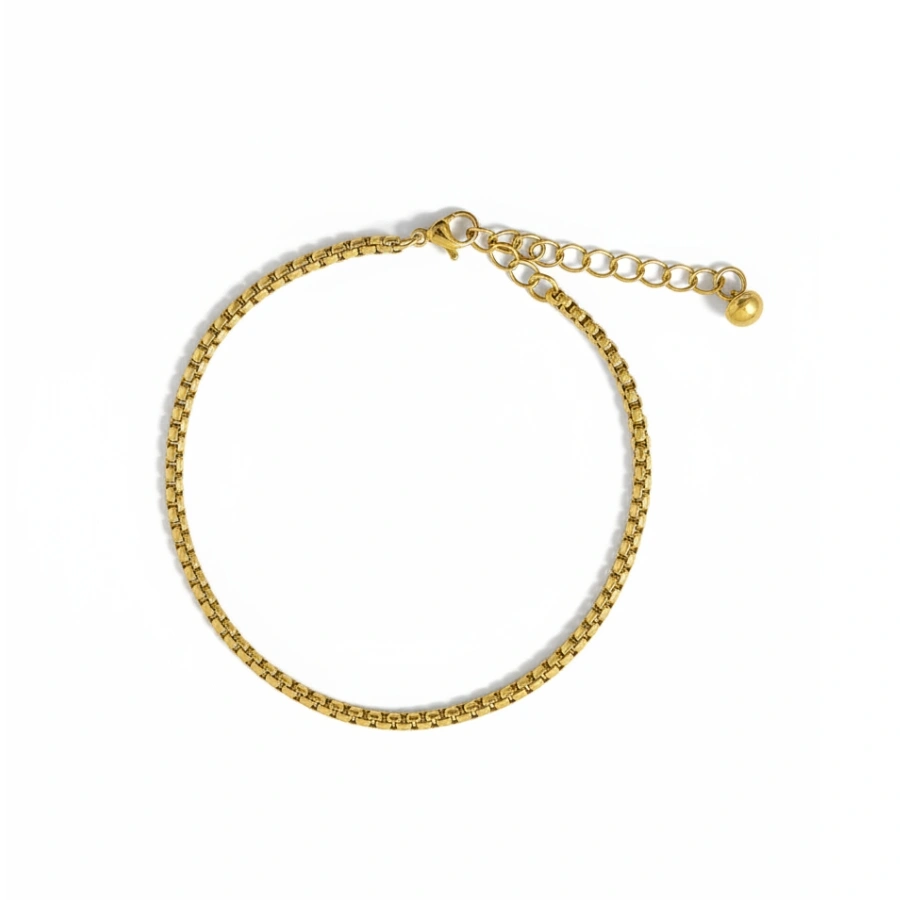 Made with meticulous care, this anklet combines sleek design with durability. The high-quality gold plating is enhanced with anti-tarnish properties, ensuring its lasting shine and resilience to everyday wear. As a lightweight yet durable piece, it promises comfort and reliability without compromising on its luxurious finish. This anklet not only enhances your collection but also becomes a dependable accessory for any occasion.