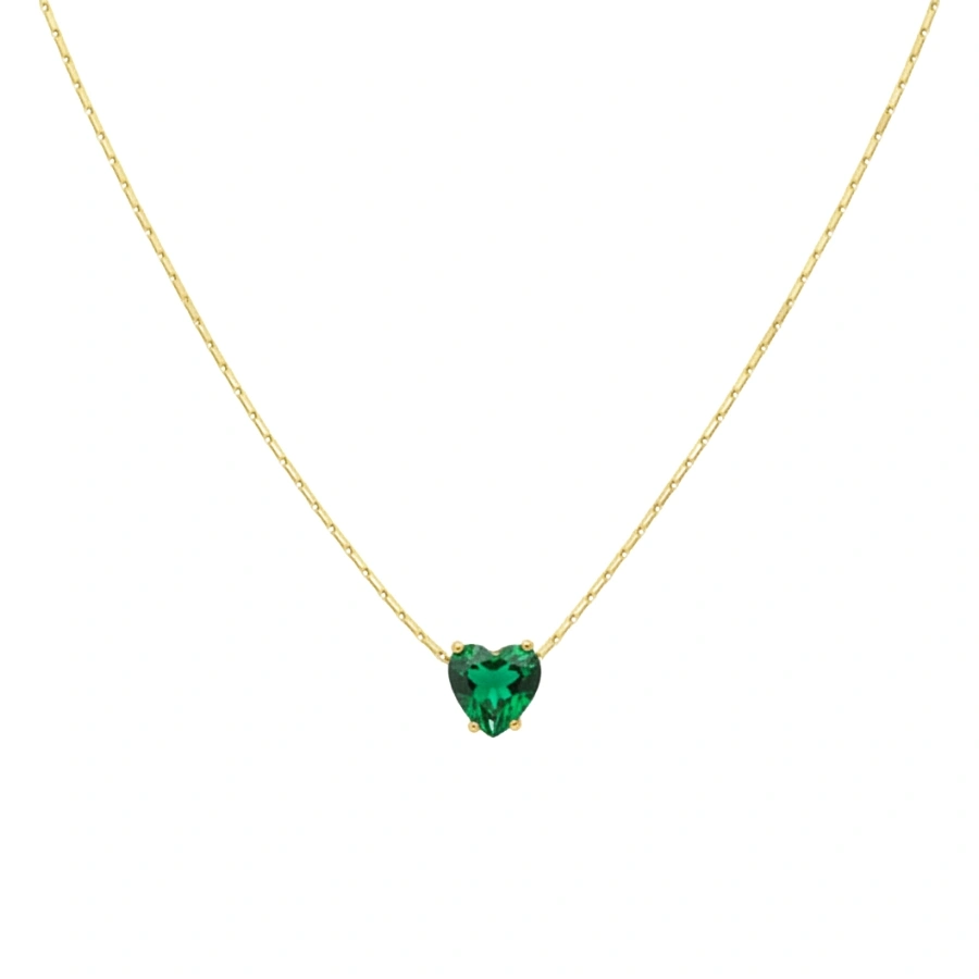 Elevate your style with this anti-tarnish 18k gold-plated stainless steel necklace, featuring a striking emerald-green heart-shaped crystal for a perfect blend of romantic and minimalist elegance.