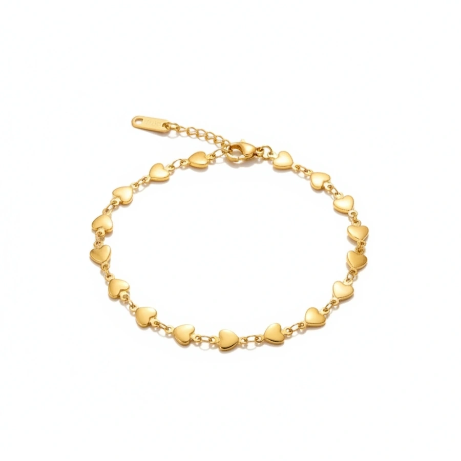 This romantic anti-tarnish 18k gold-plated 316L stainless steel bracelet features a chic heart-link design for a durable and minimalist everyday look.