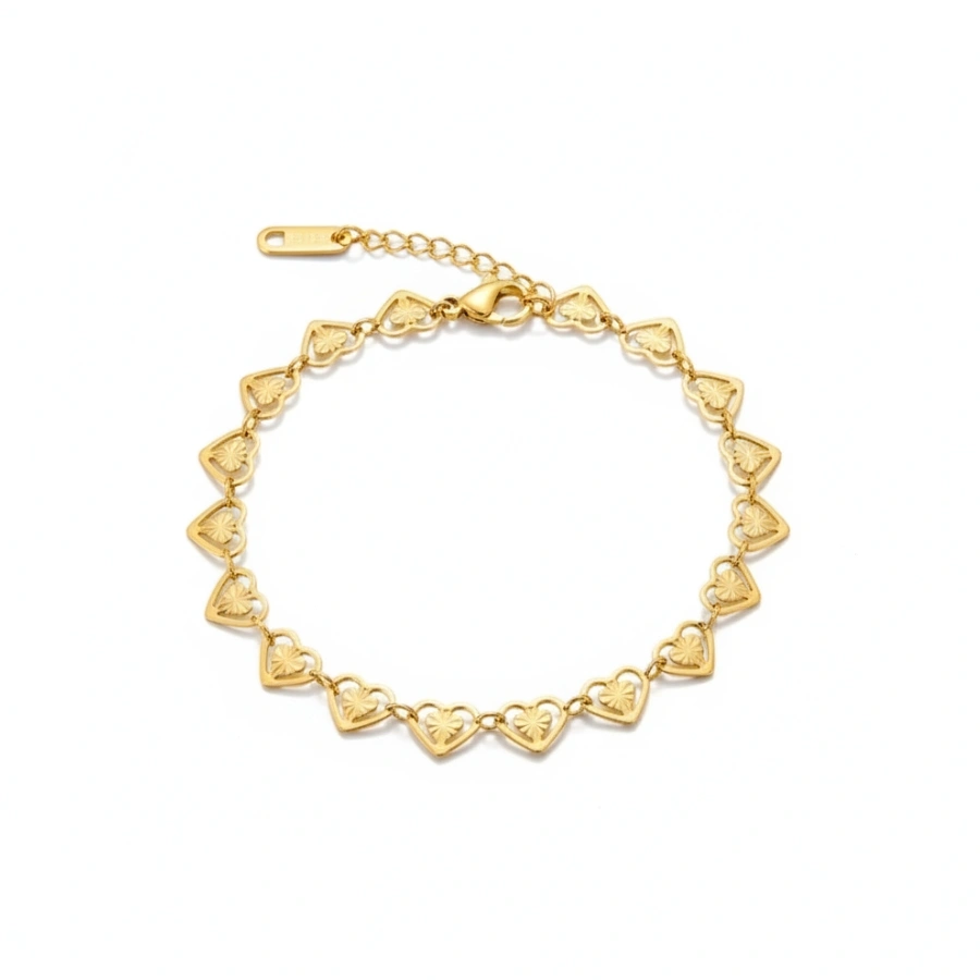 This romantic anti-tarnish 18k gold-plated 316L stainless steel bracelet features intricate heart links, offering a durable and elegant minimalist look.