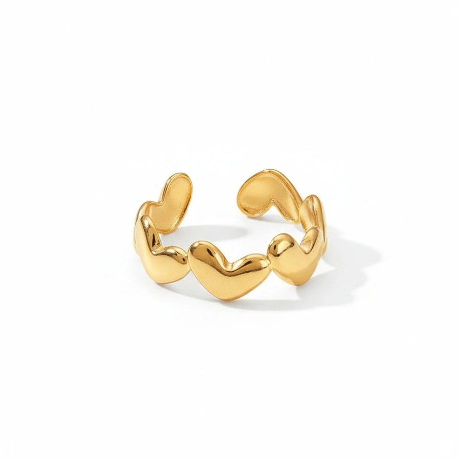 Add a romantic touch to your everyday jewelry stack with this waterproof, anti-tarnish 18k gold-plated stainless steel adjustable heart ring designed for durable, long-lasting wear.