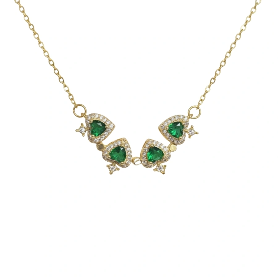 Adding a touch of innovation to its beauty, this necklace transforms seamlessly between two stunning designs. Feel the romance with the crystal green heart cluster, showcasing delicate details for an enchanting appeal. Or, bring a bit of charm to your day by switching it into a four-leaf clover pendant for a fresh and playful look. The magnetic design ensures the transition is quick, secure, and hassle-free.