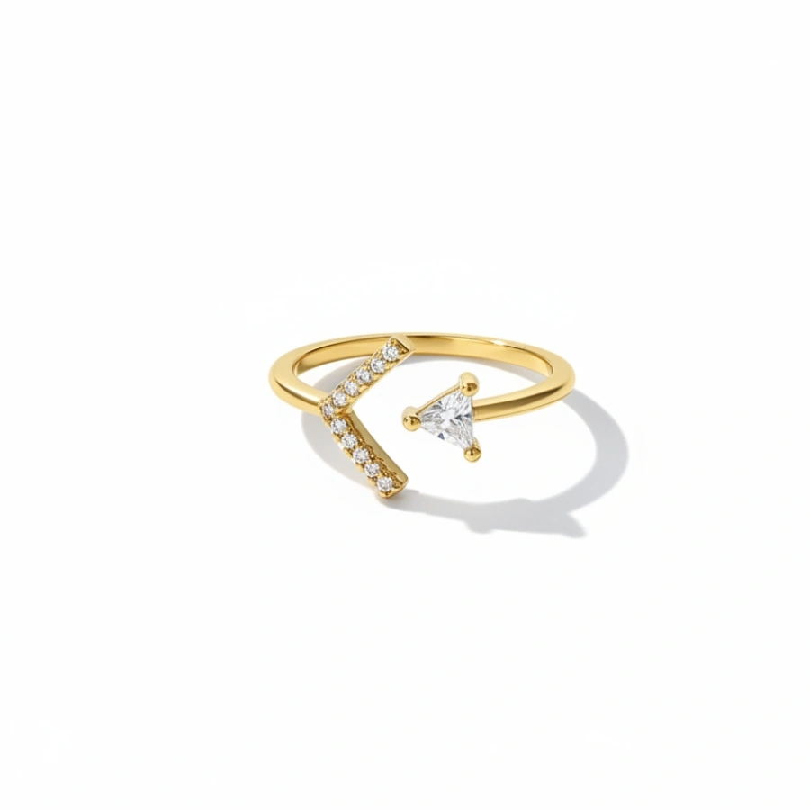 This chic anti-tarnish 18k gold-plated 304 stainless steel adjustable ring features a unique geometric design with sparkling accents, perfect for a modern minimalist jewelry look.