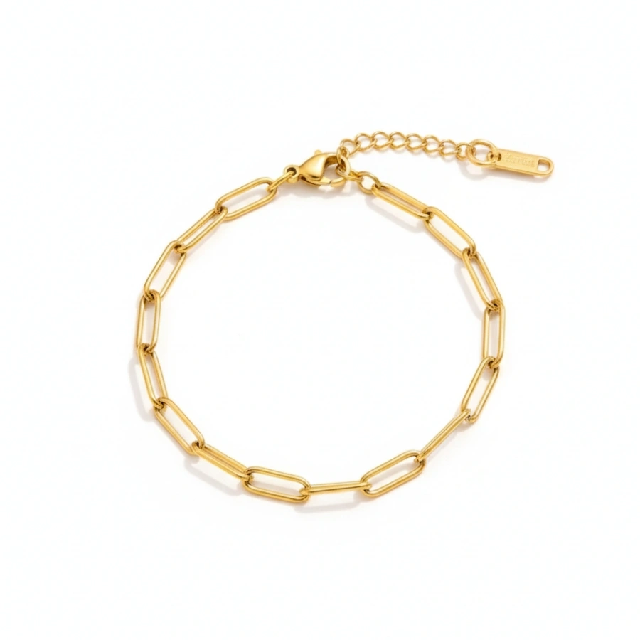 This trendy anti-tarnish 18k gold-plated 316L stainless steel bracelet features a chic paperclip link design, offering a durable and minimalist accessory for any outfit.