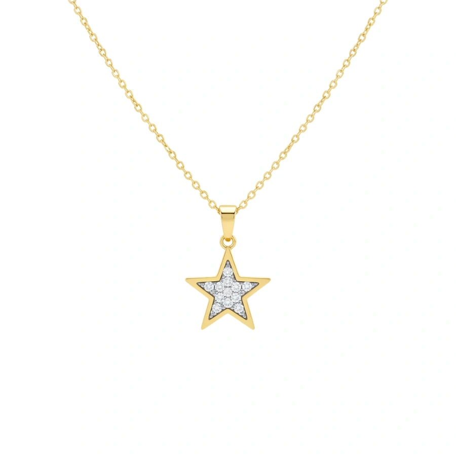 Transform your everyday look with a mesmerizing touch of elegance. This 18k gold-plated stainless steel necklace is the perfect accessory to elevate any outfit. Featuring a shimmering pave crystal star pendant, it adds a celestial sparkle that complements both casual and formal styles. Whether you’re dressing up for a special occasion or enhancing your daily ensemble, this necklace ensures you shine brightly, wherever you go.