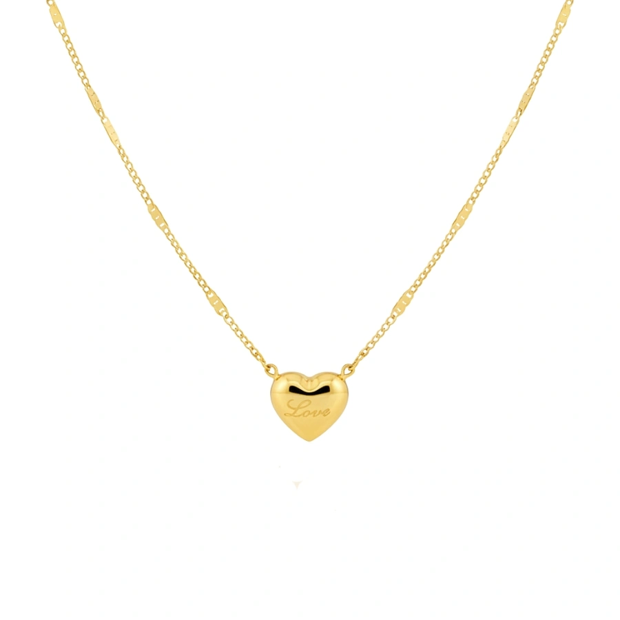 18k Gold Chain Necklace Love Heart Pendant Stainless Steel and Anti Tarnish.