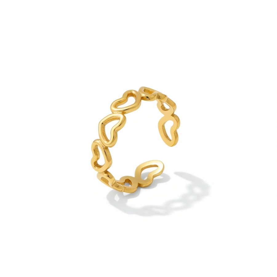 Sweet and timeless, the Gold-Plated Shiny Heart Ring features a heart motif, anti-tarnish finish, and adjustable fit for everyday elegance.