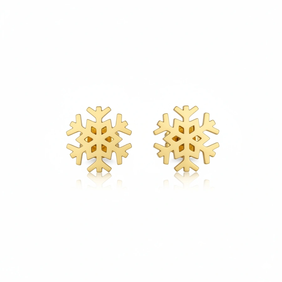 Elegant anti-tarnish 18k gold-plated stainless steel snowflake studs for a dainty, hypoallergenic, and waterproof winter-themed jewelry look.