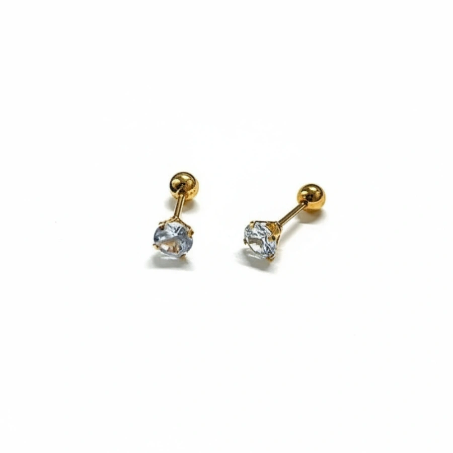 Elegant anti-tarnish 18k gold-plated stainless steel solitaire stud earrings featuring sparkling round zircons for a timeless, hypoallergenic, and waterproof everyday look.