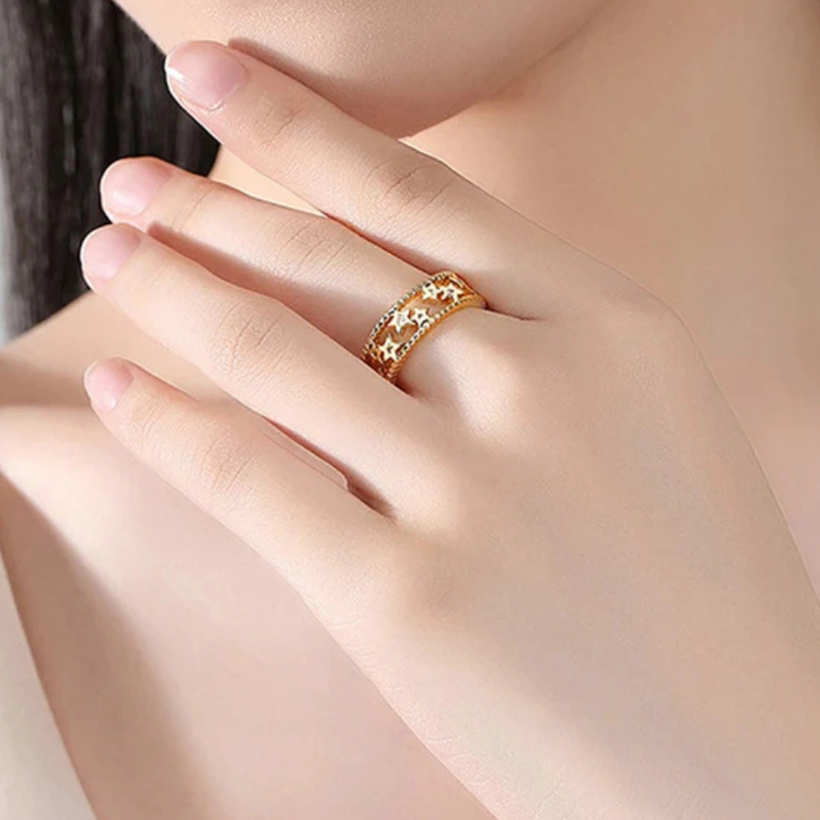 Elevate your style with this stunning Anti-Tarnish Star-Themed Ring, designed to add a celestial touch to your jewelry collection. Whether for casual wear or a special occasion, this ring balances charm and durability for a timeless accessory.