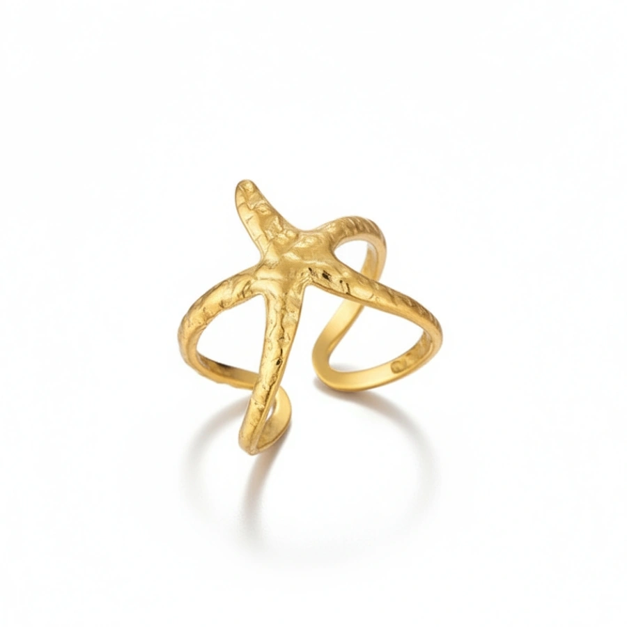 This waterproof, anti-tarnish 18k gold-plated stainless steel starfish ring features a textured coastal design, perfect for minimalist beachy vibes and everyday ocean-inspired stacking.