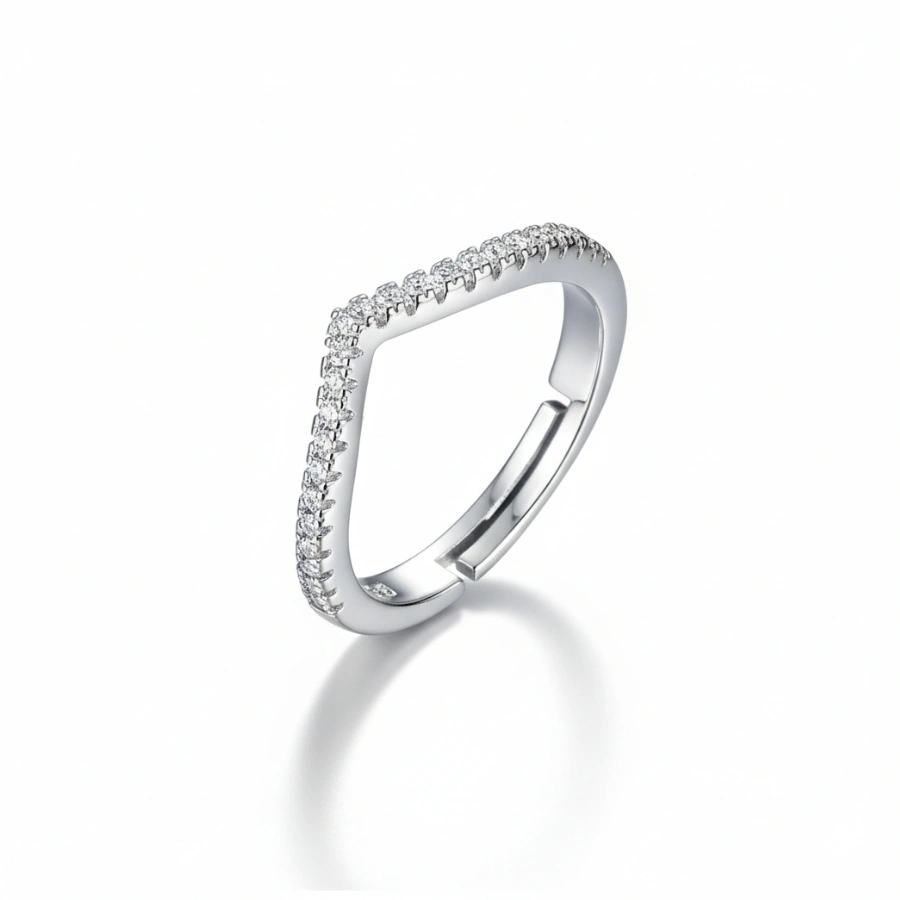 Elevate your everyday jewelry stack with this sparkling, anti-tarnish silver-plated stainless steel adjustable V-shaped chevron ring, designed for versatile and long-lasting minimalist wear.
