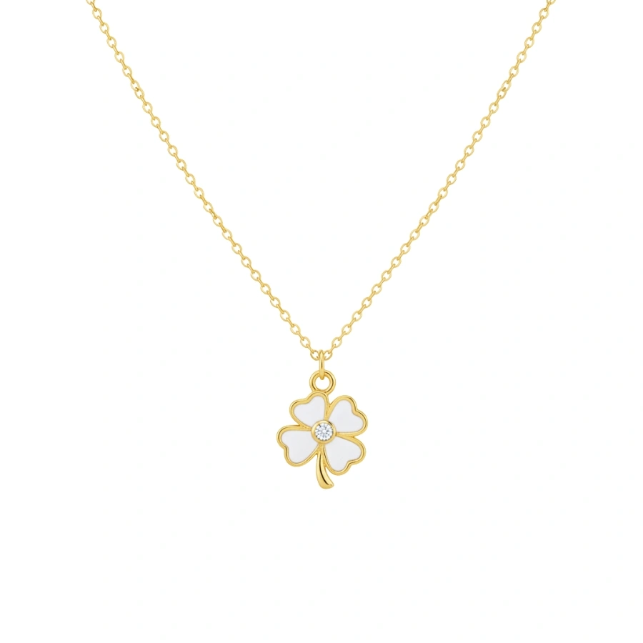 The dainty white enamel four-leaf clover pendant is the centerpiece of this stylish necklace. Each leaf symbolizes hope, faith, love, and luck, making it not just a statement piece but a meaningful accessory. To add a hint of glamour, the pendant features a sparkling crystal center, catching the light just right for an enchanting look.